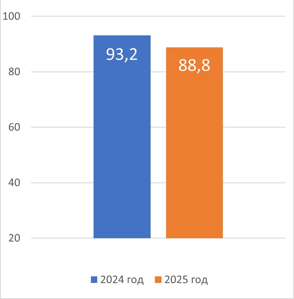 В приведённой ниже инфографике вы видите денежные расходы населения Республики Адыгея за два аналогичных периода: 1 полугодие 2024 и 2025 годов. Так, покупка товаров и услуг в 2025 году составила 88,8%, тогда как годом ранее (2024 год) этот же показатель был равен 93,2%. То есть в прошлом году мы чаще оплачивали потребности и охотнее расставались со своими кровными.