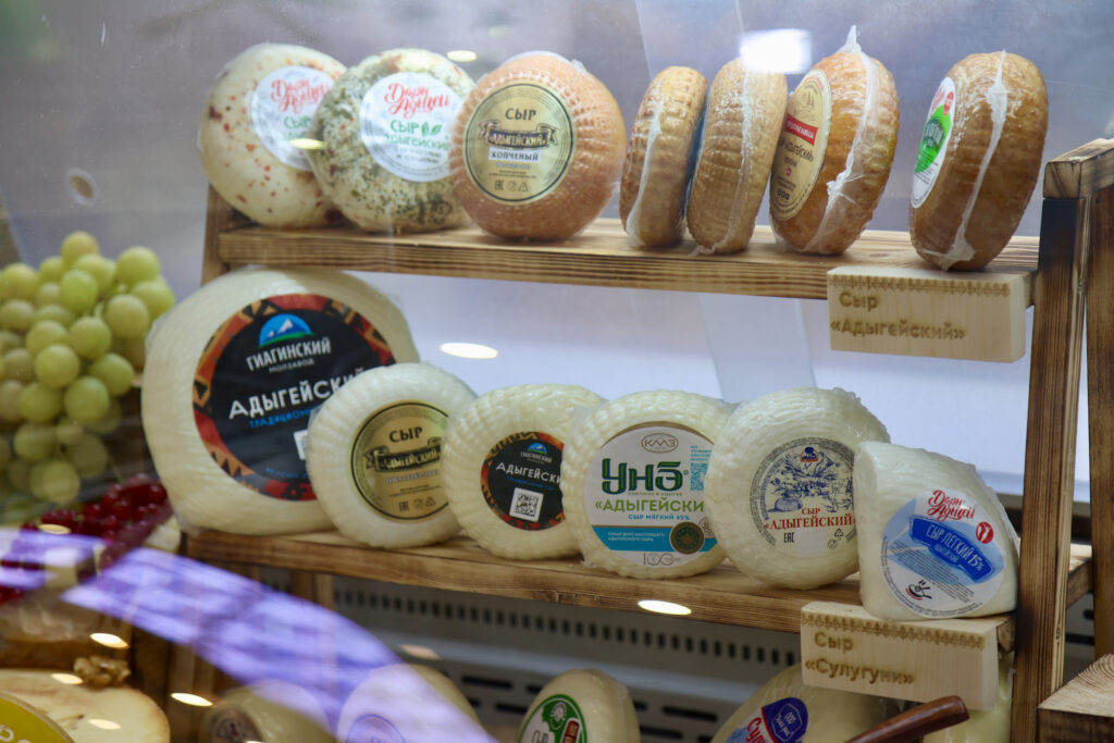 Участие в выставке принимает и Республика Адыгея. На выставочном стенде региона площадью 64 кв. метра представлена продукция наших производителей, включая брендовые адыгейский сыр, адыгейский чай, Майкопскую минеральную воду, адыгейскую соль, органические продукты.