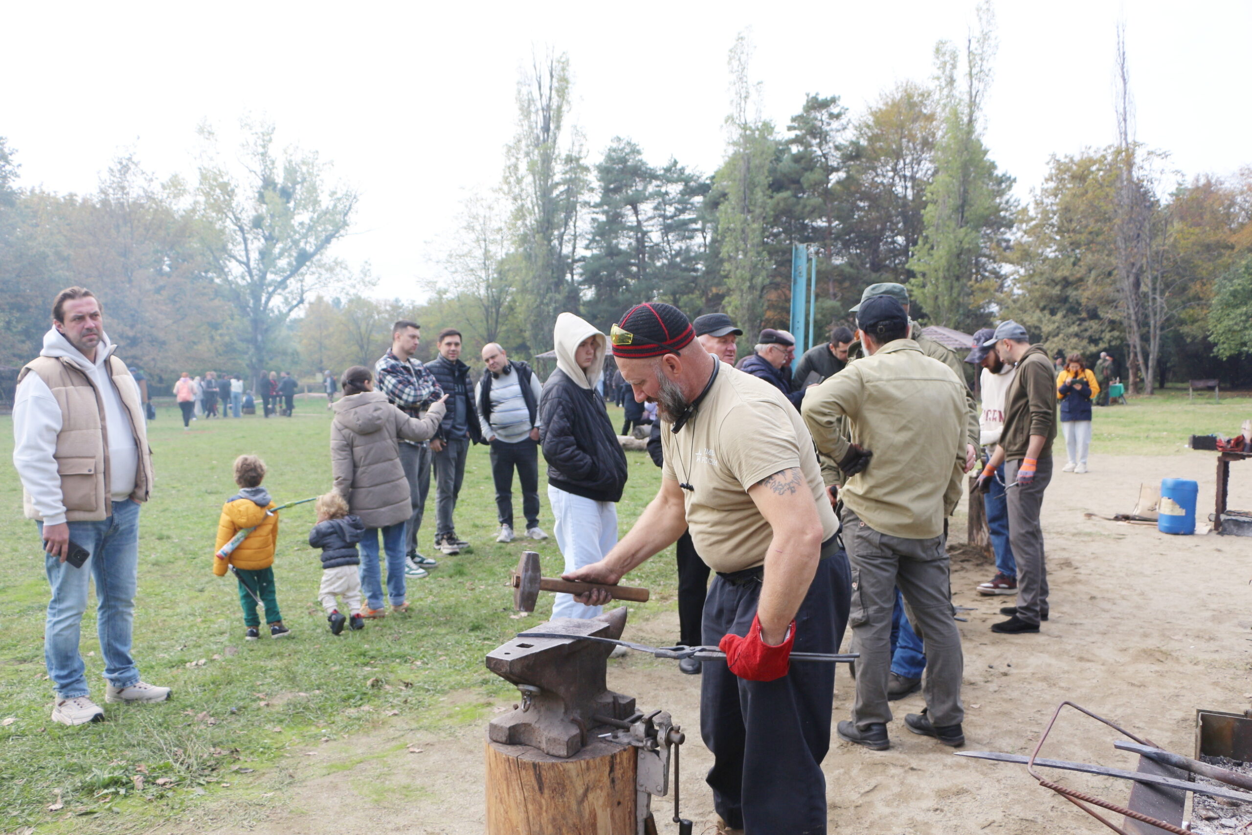 Пока гости рассматривают клинки оружейников, на поляне слышны звуки ударов молота. Кузнецы демонстрируют своё мастерство, придавая металлическим деталям нужную форму. Рядом горн, где сначала мастер разогревает кусок металла до нужной температуры. Зрители окружили умельцев и восхищённо следили за выверенными движениями и ритмом.