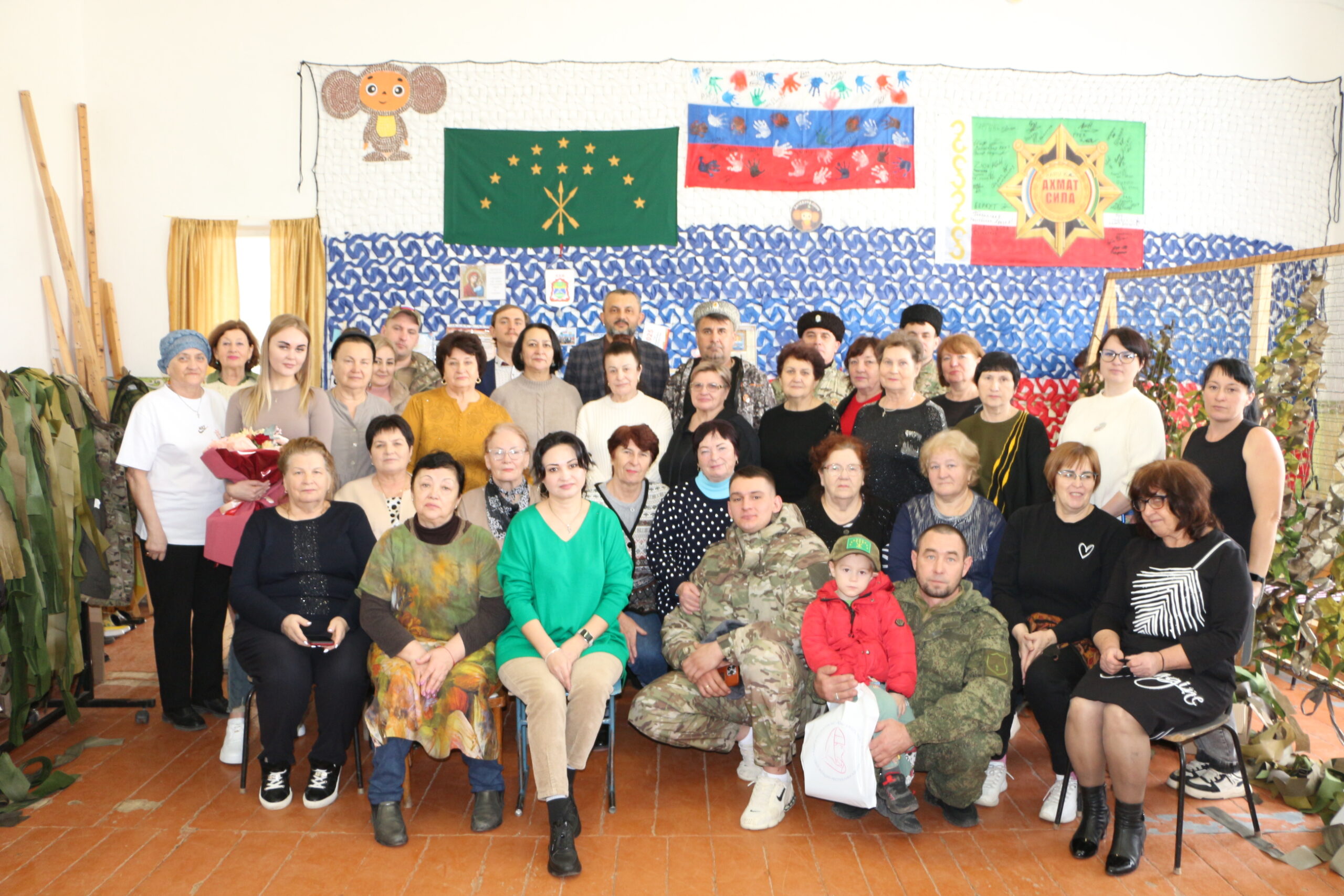 Пункт, где собираются добровольцы для плетения нашлемников, маскировочных сетей и костюмов, известен многим — это бывший детский сад «Чебурашка». Здание это расположено в центре станицы Гиагинской. Волонтёрам, которые живут в районе бывшего сахарного завода, неудобно добираться к месту сбора. Далеко, да и финансово накладно оплачивать проезд на общественном транспорте. Руководитель волонтёрской группы «Всё для фронта, всё для Победы» решила этот вопрос, чтобы как можно больше «золотых ручек» оставались в коллективе.