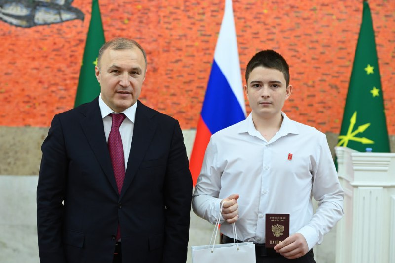 В рамках вручения госнаград Глава Адыгеи провел церемонию вручения паспортов граждан России юным жителям Адыгеи.