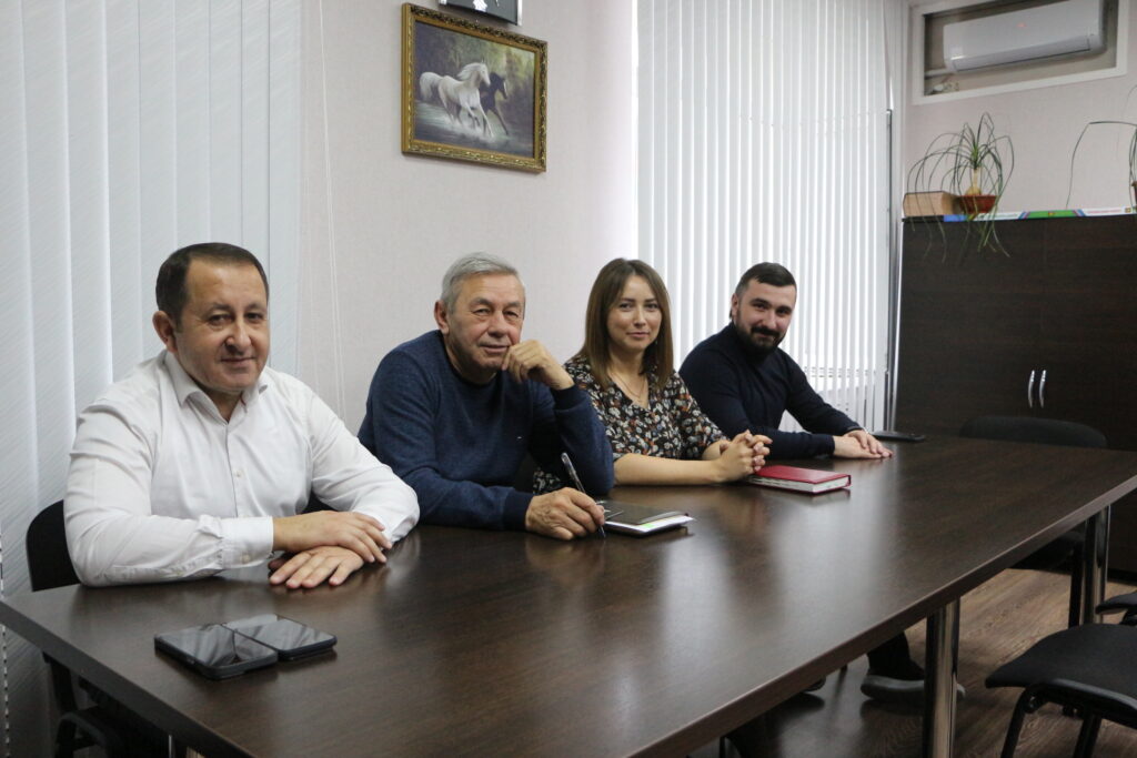 С общественниками мы встретились в кабинете Вячеслава Юрьевича, который пояснил, что участники встречи — это малая часть состава местного отделения, но это люди, которые всегда готовы откликнуться на просьбы и эффективно их решать. Среди них — Рамазан Меретуков, руководитель районного отделения, Рамиз Абдулкаримов, представитель азербайджанской общины, и Айдамир Маушев, генеральный директор предприятия оптовой торговли «М-групп».