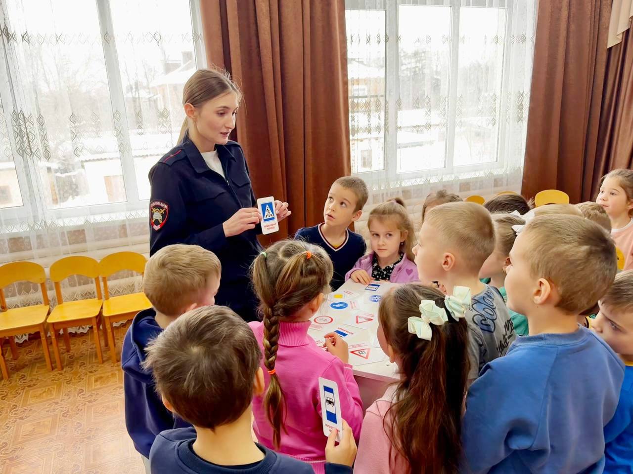 Главной темой встречи стала безопасность пешеходов в тёмное время суток. Сотрудники Госавтоинспекции по Гиагинскому району провели для воспитанников детского сада познавательное занятие, на котором рассказали о важности световозвращающих элементов и куда их лучше всего прикрепить. Детям наглядно продемонстрировали, как маленькие «светлячки» помогают водителю вовремя заметить человека на дороге в сумерках или при плохой погоде. Кроме того, инспекторы закрепили с дошкольниками знания о дорожных знаках: какие знаки предназначены для пешеходов, а какие — для водителей.