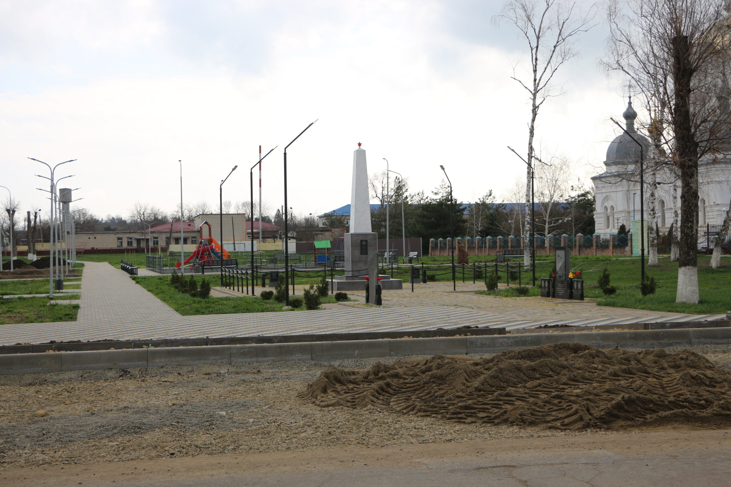 Это благоустройство центрального входа в парк имени Чкалова в станице Дондуковской и приведение в порядок старого кладбища в станице Гиагинской.