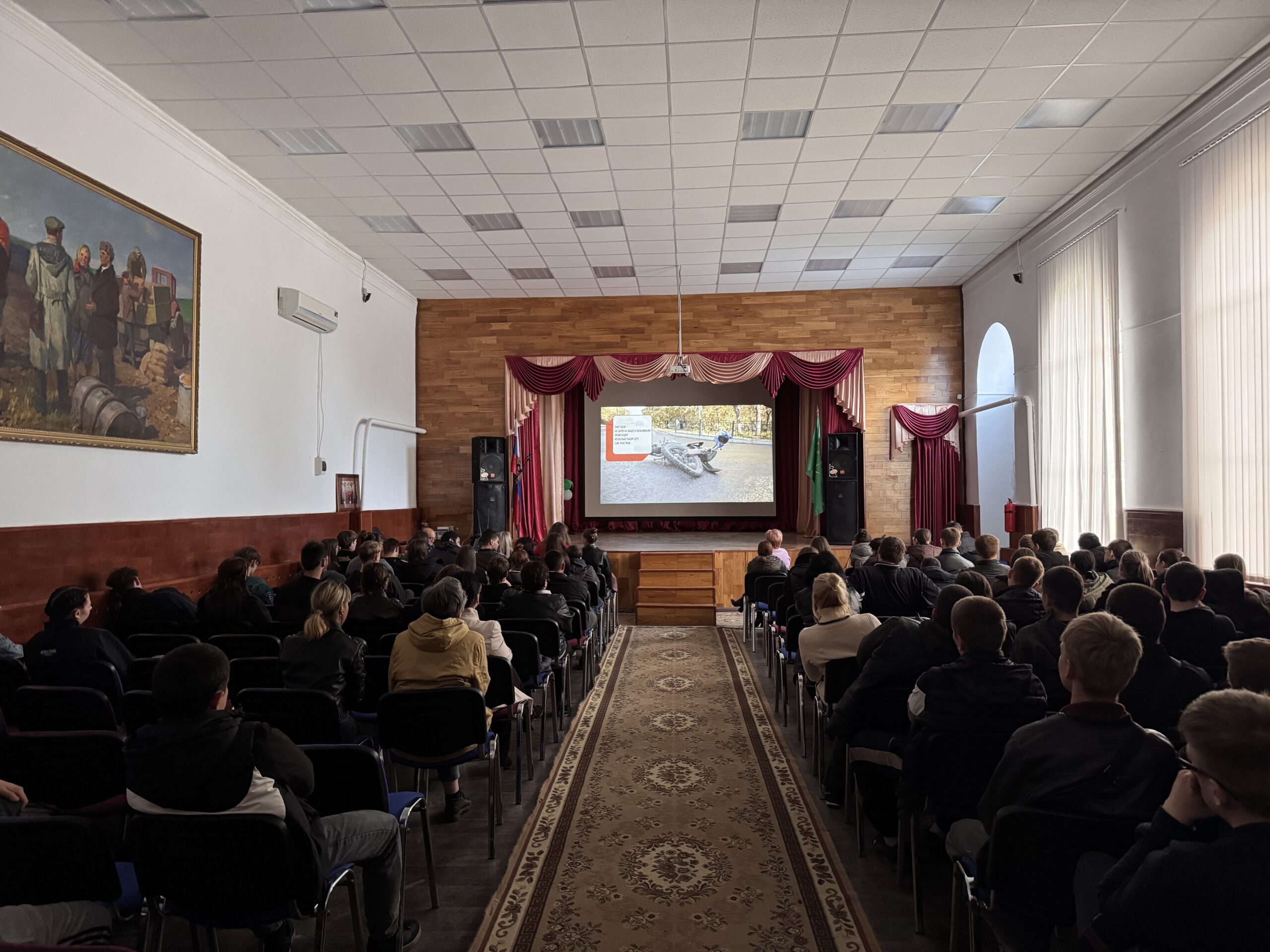 Для демонстрации последствий легкомысленного поведения на дороге учащимся был показан профилактический видеоролик «Мотоцикл в руках ребенка — игрушка или смертельная опасность?». Кадры фильма, основанные на реальных событиях, вызвали живой отклик у аудитории и послужили поводом для серьезного обсуждения ценности человеческой жизни.